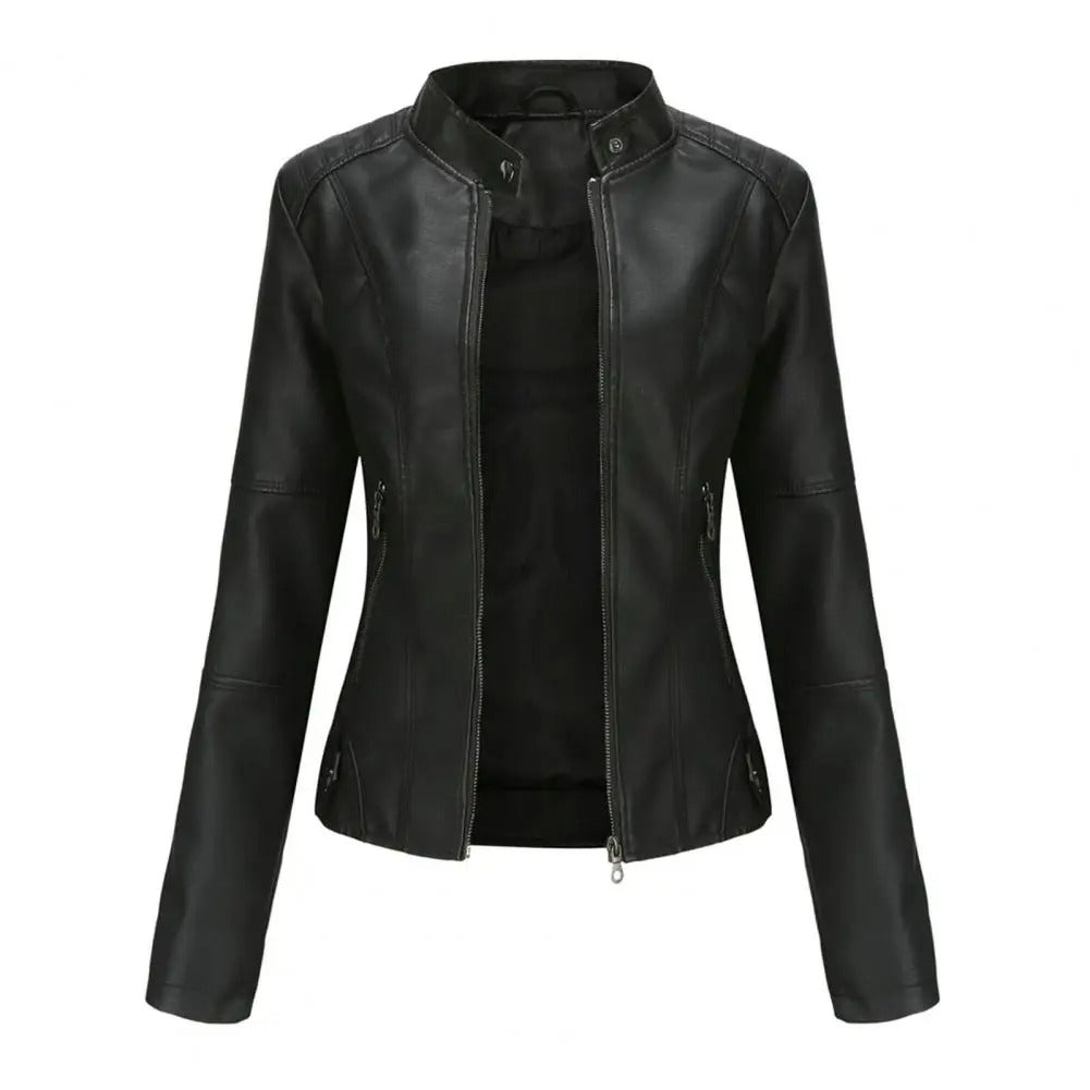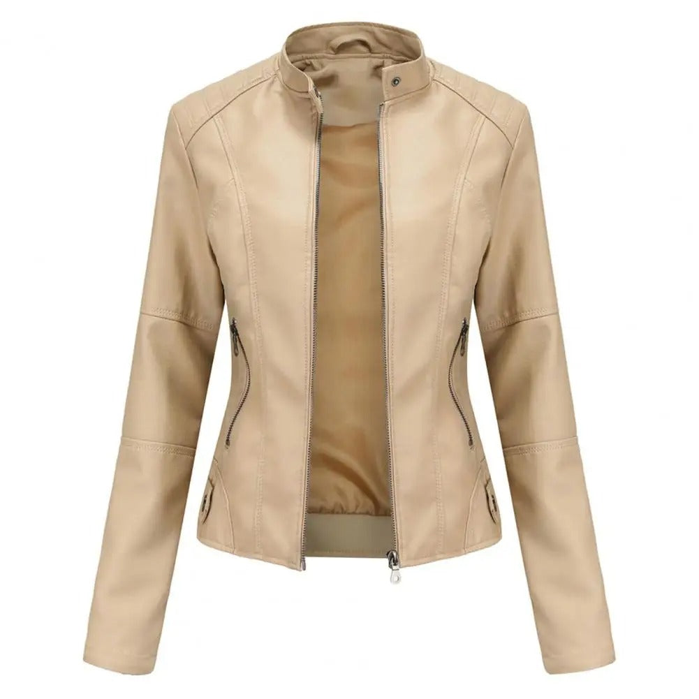 DAKOTA – Leren motorjack met getailleerde pasvorm en opstaande kraag voor dames